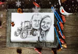 Na życzenie klienta możliwe jest zabawne zniekształcenie twarzy lub podkreślenie charakterystycznej cechy. Scenerię tła dobieram na podstawie Twoich wytycznych np. może dotyczyć to zawodu-hobby osoby rysowanej, karykatury z pupilem, samochodem , tło z krajobrazem, ślubna, urodzinowa itd.