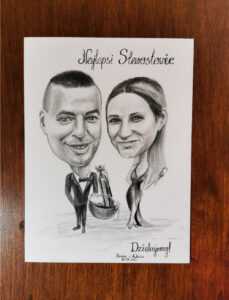 urodziny, rocznica, karykatura firmowa, prezent na wesele. Pozwala z poczuciem humoru podejść do wydarzenia i zdecydowanie lepiej sprawdzi się niż drobny zbędny upominek.